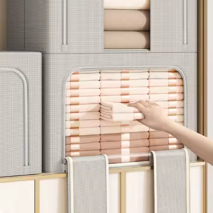 - ترتيب خزانة الملابس: مثالي لتخزين الملابس الموسمية أو القطع التي لا تُستخدم بشكل يومي.