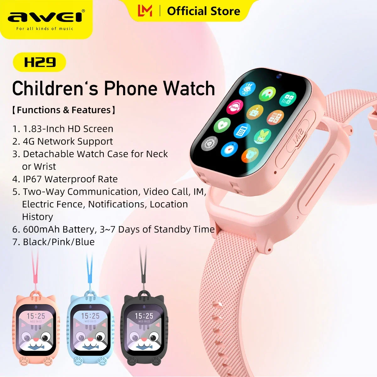 Awei H29/H30 Children's phone Smart watch GPS Accurate Locating Video Call 4G network Waterproof rate IP67 Ultra Long Battery smartwatchs for boys girls kids children
