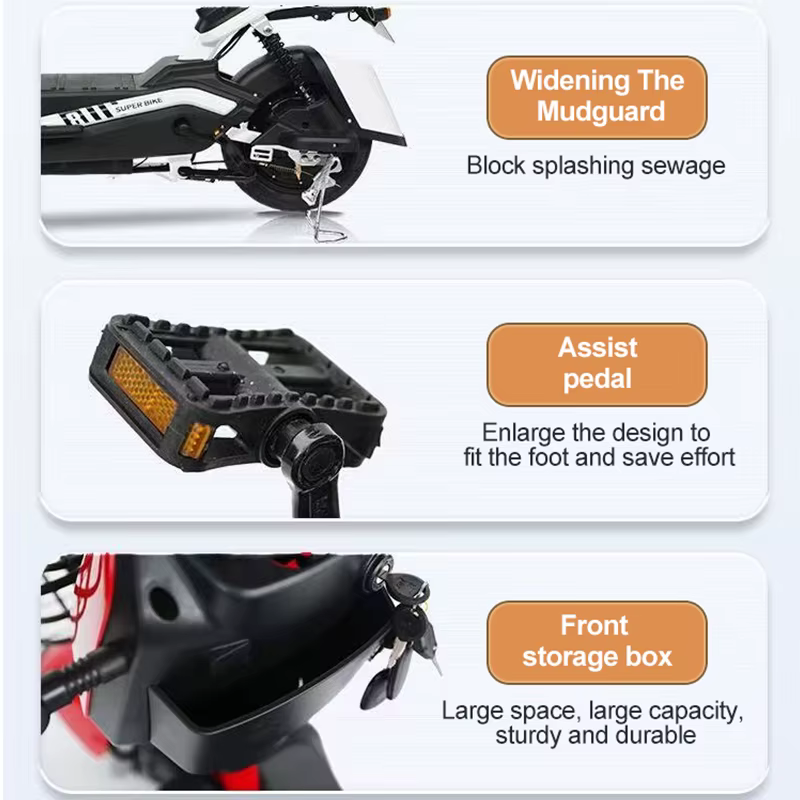 سكوتر كهربائي مصمم ليمنحك الأداء والقوة مع كل مشوار, مزوّد بمحرك "مينج ما" بقدرة 1000واط من مصنع MENGMA تصل سرعته إلى 60 كم / ساعة, بطارية 60V/20AH من Tianneng، تقطع حتى 80 كم في الشحنة الواحدة بكل راحة وثبات.